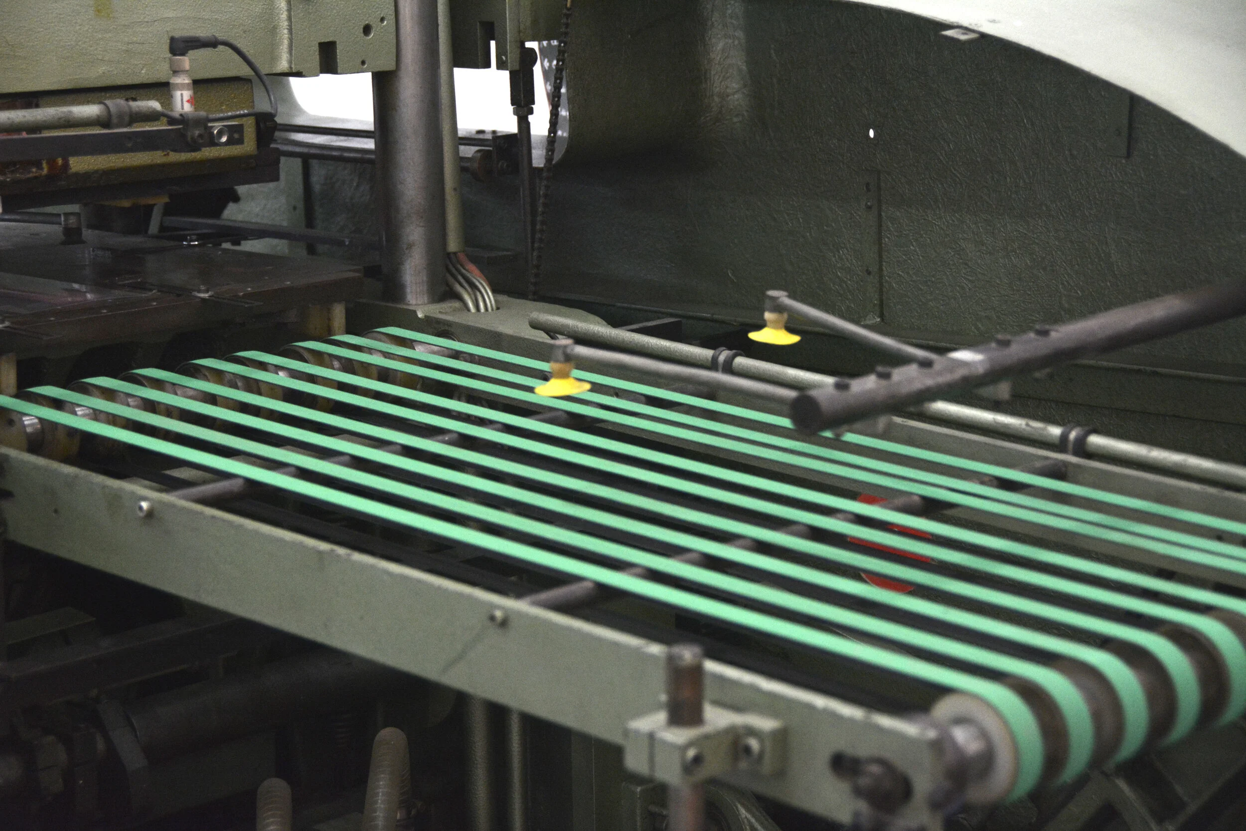 1. Impress a pattern or mark on (a surface, object, or document) using an engraved or inked block or die.